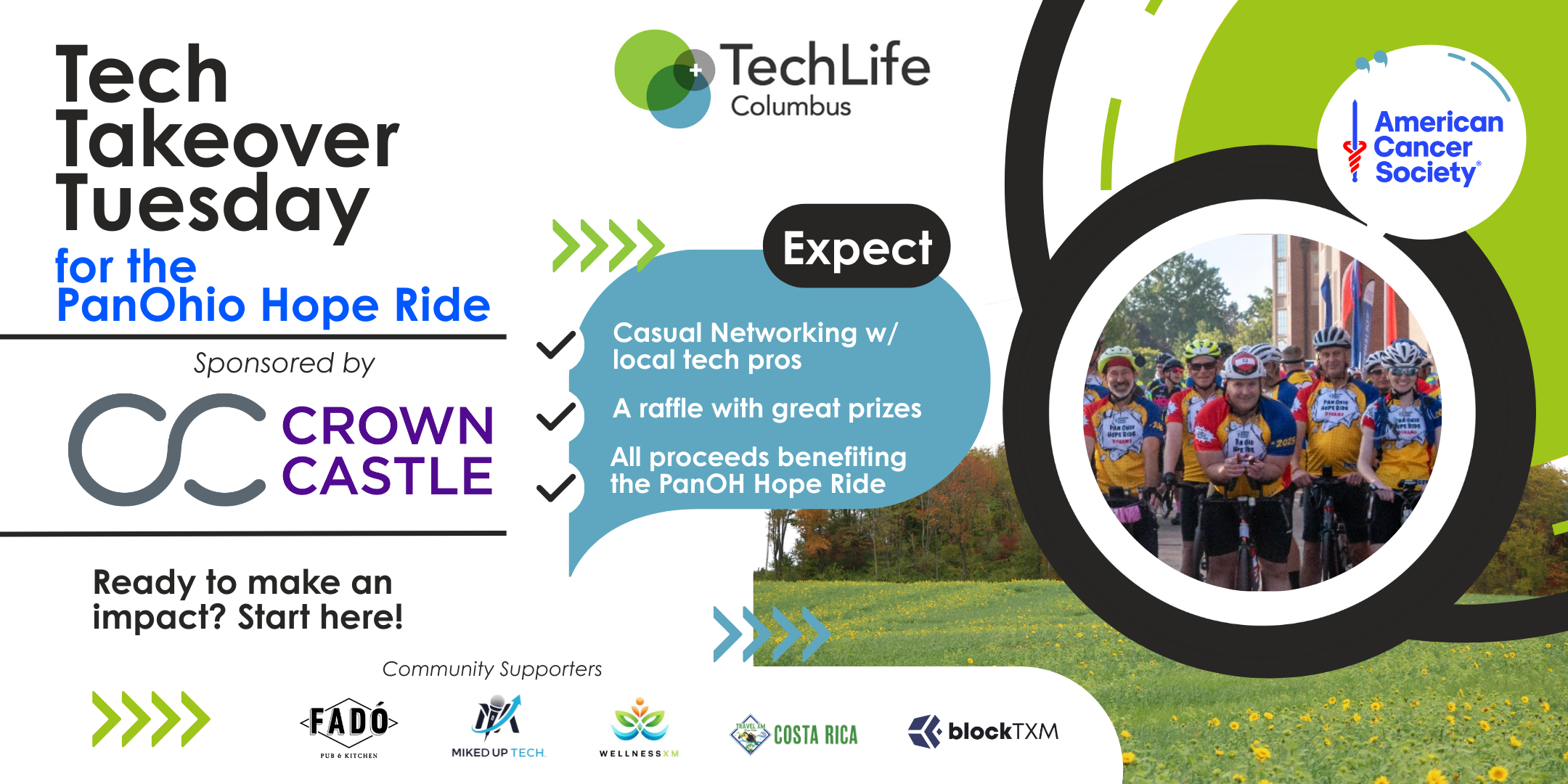 In partnership with Crowne Castle, we’re bringing the Central Ohio tech community together to raise funds and awareness for The American Cancer Society PanOH Hope Ride, a fully supported, scenic charity bicycle adventure across Ohio, traversing a variety of terrains with something for everyone.🚴🚴‍♀️ !